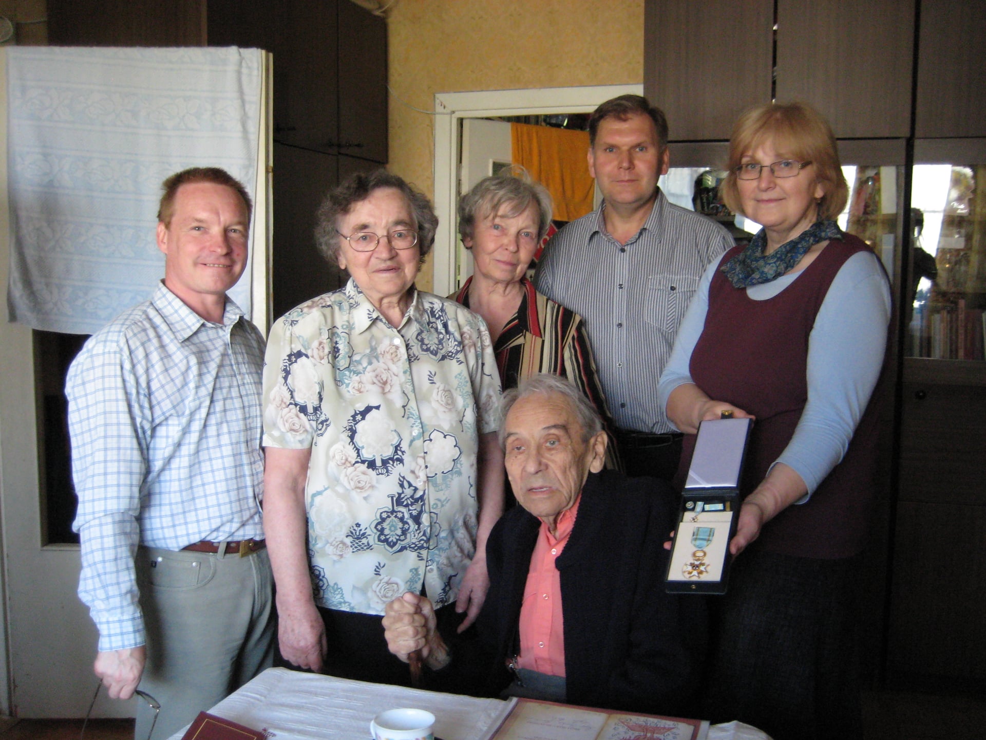 11.05.2011. Rīgas Skolu muzeja darbinieki ciemos pie dr. hist. Alfrēda Stara, sveicot ar Valsts apbalvojumu – Triju Zvaigžņu ordeni.