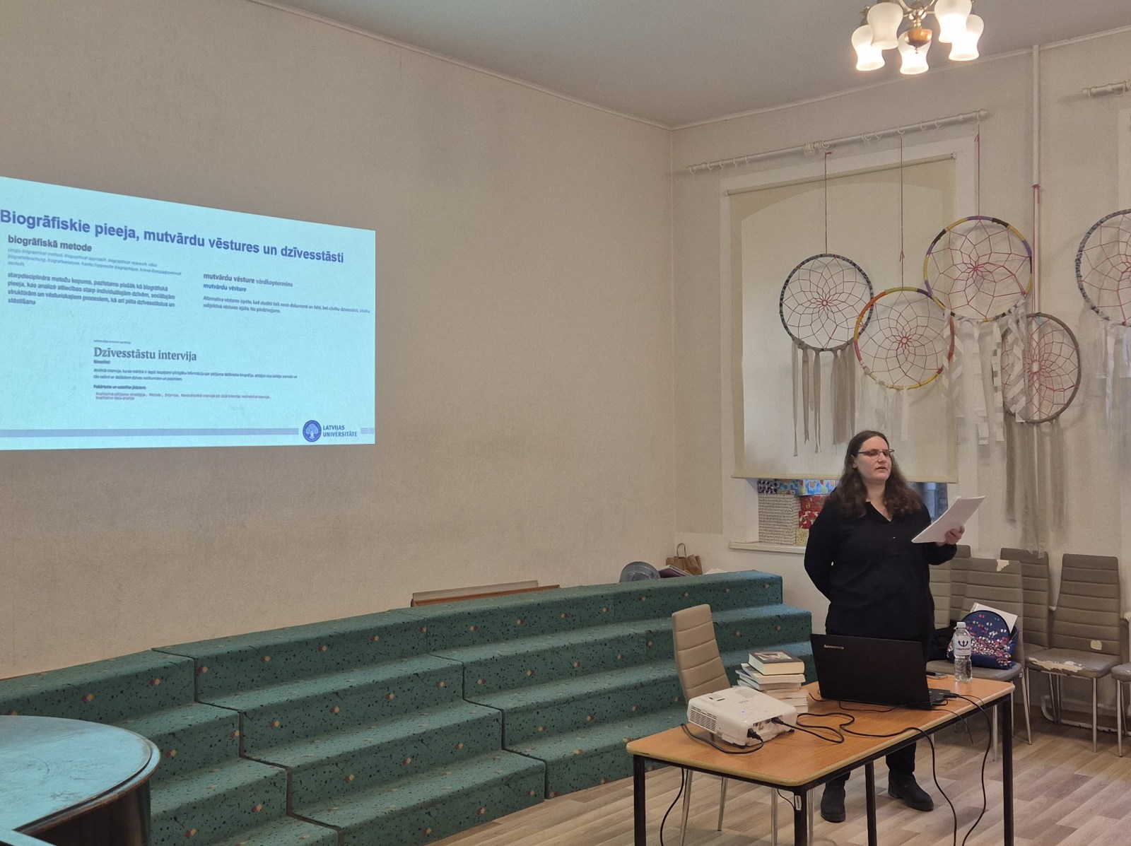 Dienas turpinājumā Latvijas Universitātes Filozofijas un socioloģijas institūta vadošā pētniece Maija Krūmiņa kursu dalībniekus rosināja aizdomāties par mutvārdu vēstures nozīmību muzeja darbā. Klātesošie uzzināja par mutvārdu vēstures pētniecību Latvijā, tās nozīmi un praktisko pielietojumu, kā arī apguva teorētiskās zināšanas par biogrāfisko interviju sagatavošanu, norisi, dokumentēšanu un “pēcdzīvi’.